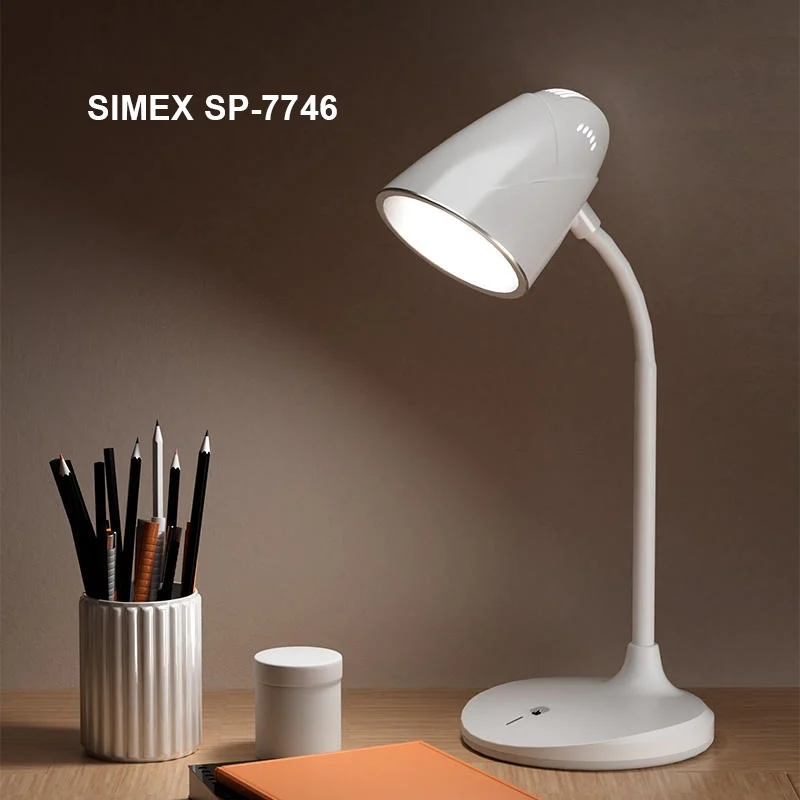 Its eye-protection LED light provides soft, flicker-free illumination that reduces strain during long hours of reading or studying. With a stylish, portable design and adjustable lamp angle, the SP-7746 is an excellent choice for students, professionals, and home use.